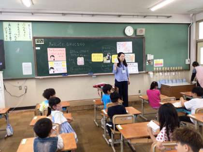 今日は栄養教諭の廣瀬先生に給食を美味しく食べるためのお話を聞きました。