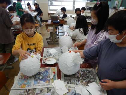 丸みを生かした作品づくりをしています。今後はお面や帽子、気球に変身している予定です。