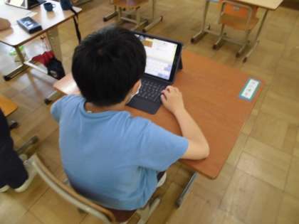 総合の学習では、タブレットを使って新聞づくりをしました。