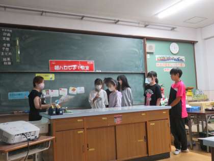 ポテトチップスで有名な会社「カルビー」の方に来ていただき、よりよい朝ご飯について考える授業を行いました。