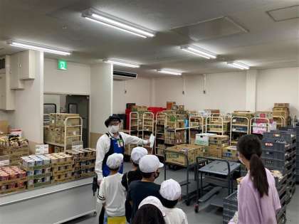 近商さんにスーパーマーケットの裏側を案内していただきました。商品が置いてある冷蔵庫や店頭に並べる商品を加工している様子などの、普段は見られないようなところを見学しました。多くの質問にも答えてもらい、多くのことを学ぶことができました。