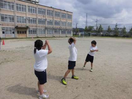暑くなってきましたが、みんな必死にマラソンしています。準備体操も忘れずにしていますよ。