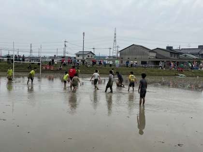 日曜日は「たんぼラグビーin京都向島」に有志のメンバーが参加しました。泥んこになりながらも、トライを目指し、仲間とボールをつなぐ姿が素晴らしかったです!本当によくがんばりました!