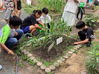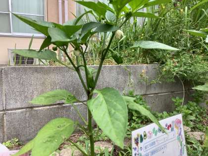 今朝も畑の夏野菜の世話をしました。雑草抜き、水や肥料をあげました。そして、成長の早いナスやピーマンなどの第1号を収穫しました。