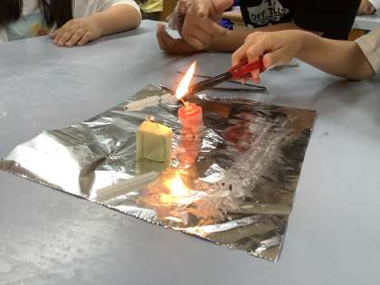 ロウソクは、どのような原理で燃ているのかということについて学びました。