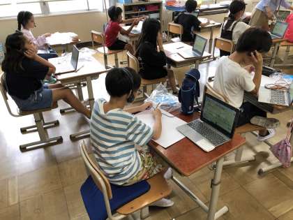 音を聞き、頭の中でイメージしたことを絵にしました。同じ音でも全然違う絵になり、面白いです。