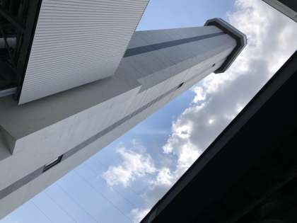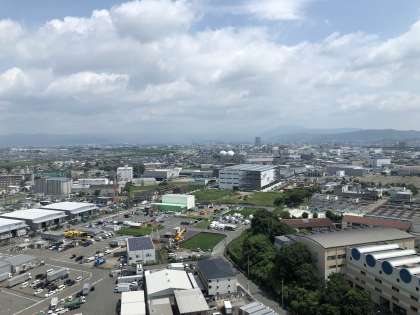 煙突の上から京都の町を見下ろしました。普段は見えない建物や山などが見えました。
