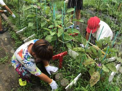 今日も野菜のお世話をしました。雑草が伸びてきたので、雑草を朝の涼しい時間に、集中して抜きました。