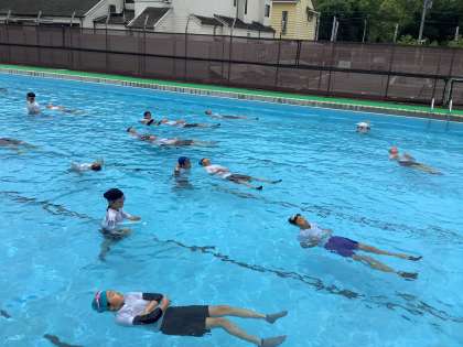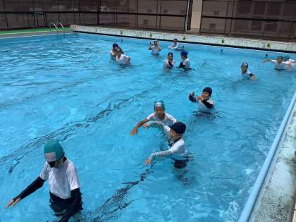 今日の体育は「着衣泳」の学習をしました。絶対にあってほしくありませんが、万が一の事態に遭遇してしまったときは「浮いて待て」を心がけてください。