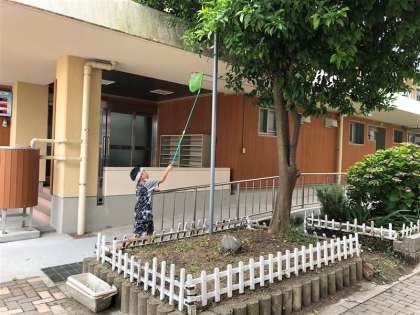 新しく用意した虫あみを使って、虫を捕まえていました。暑い中ですが、無理せずに楽しんでほしいと思います。