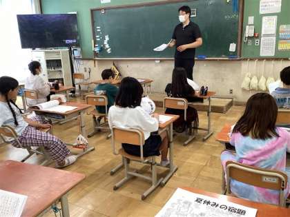 少し早いですが、夏休みの宿題を配りました。これから、計画的に進めてほしいと思います。ページ数もたくさんあるので、頑張ってほしいと思います。