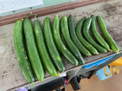 たくさんの野菜が収穫できています。一所懸命育てた子どもたちは大満足です。