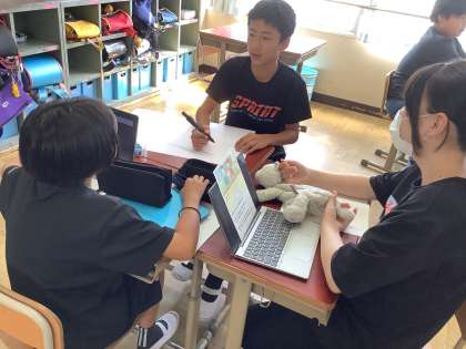 6年生の算数では『比とその利用』の学習が始まりました。今日は教科書にある問題を、あえてノーヒントで自分の生活経験をもとに考えました。