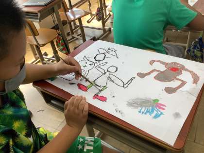 図画工作の『お話の絵』の学習も順調に進んでいます。お話をもとにイメージを広げて、思いを表現しています。