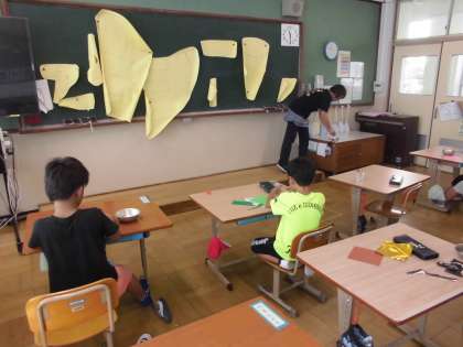 自立の学習では、紙をちぎって貼る学習をしました。何に活用するかはお楽しみですね。