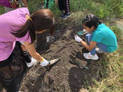 畑の計画に沿って、秋植えの野菜を植えました。たくさん収穫するにはどうするか考えていました。