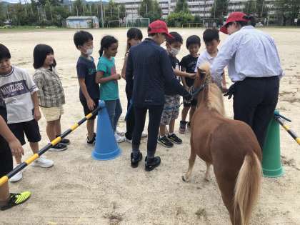競走馬やポニーについて学習をし、実際に馬に触れる体験をしました。その中で馬に興味を持つ子がたくさんいてとてもいい時間になりました。