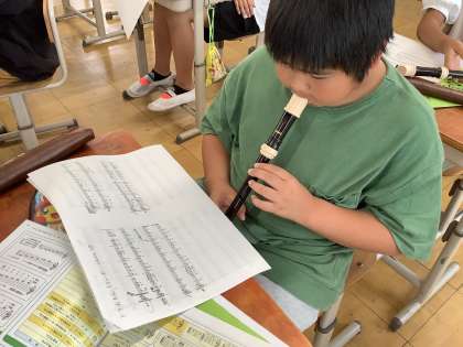 音楽の学習では、学習発表会に向けての練習が始まっています。今日はリコーダーで「ドラえもん」のテーマを吹く練習をしました。