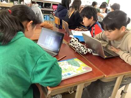 今日の国語の学習では、宮沢賢治が『やまなし』という作品に込めた思いについて考え、友達と交流をしました。