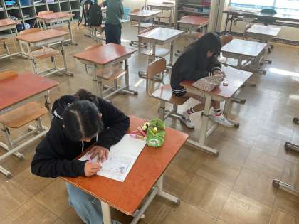 漢字テストに向けて朝から練習しています。自信を持ってテストにのぞんでほしいです。