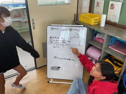 面積の問題をグループで話し合いながら解決しました。