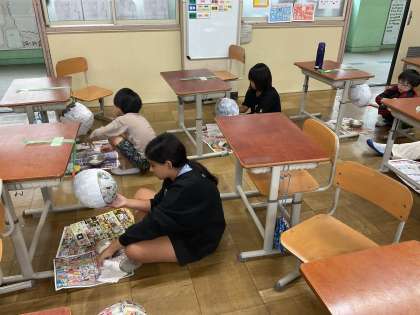 はりこの技法を使い、立体作品に挑戦しています。完成が楽しみです。
