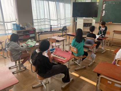 朝、登校した子から自分の時間を過ごしています。今は楽器の練習をしたり、タイピングの練習をしたりしています。