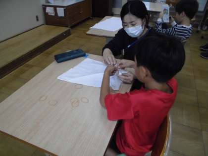 図工の学習では、布を染める学習をしました。完成が楽しみです。