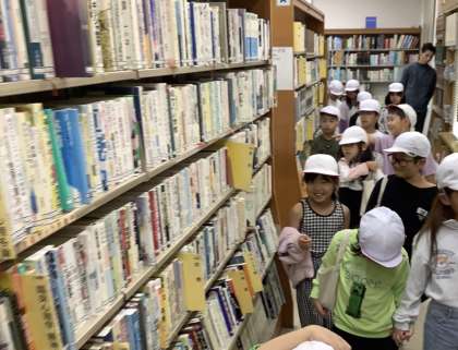 今日は「まちたんけん」に行きました。遠足や生き物探偵団の時に行った、中央公園とは異なる景色にびっくり!!どんぐりや落ち葉を拾いながら、秋見つけをしていました。向島図書館にも見学に行き、たくさんの本に驚いていました。