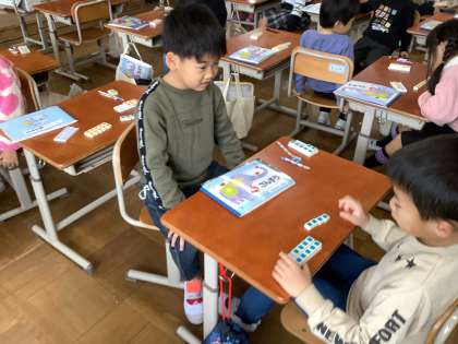 13ー9の計算の仕方を考えていきました。10のかたまりの数図ブロックをどのようにしたら良いかを友だちに伝えていました。