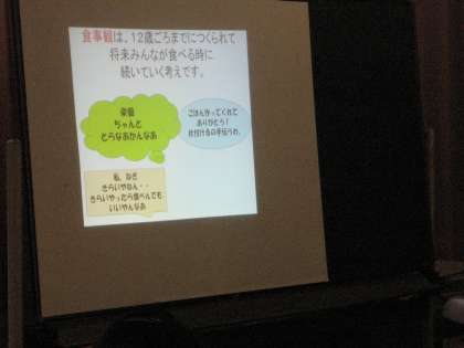 先週,6年生は最後のランチルーム給食でした。みんなで楽しく給食を食べた後は,堀井先生から,食についてのお話をしていただきました。これまでに学んできたことをふり返り,これからの自分と「食」について考えました。