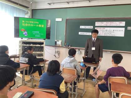 5年生では、京都府警のスクールサポーターの方をゲストティーにお招きして「非行防止教室」を開いていただきました。いつも正しい行動をできるように心がけましょう。