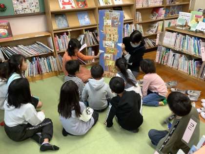 図書員が読み聞かせをしてくれました。低学年はとっても喜んでいました。