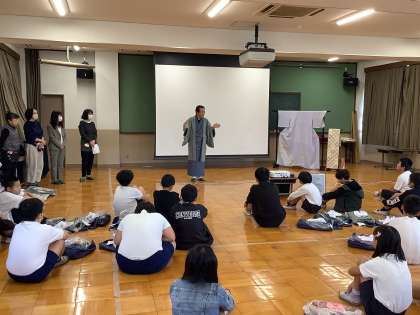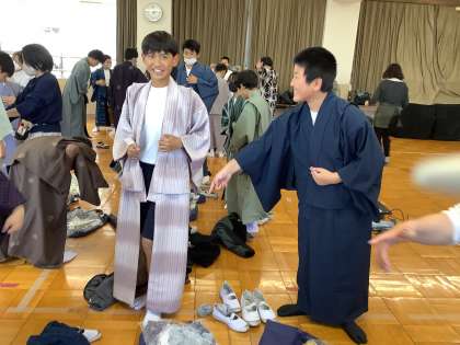 高学年ユニットは「着物着付け体験」の出前授業を受けました。着付けだけでなく、着物の歴史や特徴などのついても学びました。