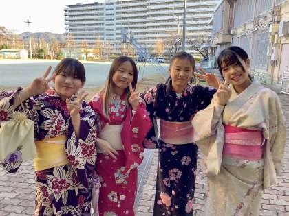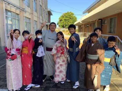 学習の最後には、着物を着て校内散歩をしたり、記念撮影をさせていただきました。とっても貴重な体験となりましたね。
