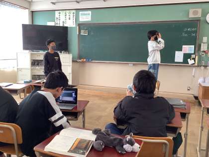 6年生の国語科の狂言「柿山伏」の学習では、単元の最後に音読劇を楽しみました。