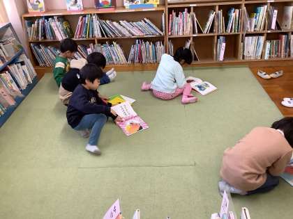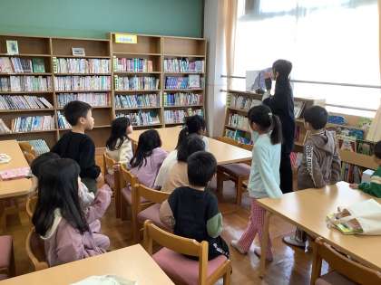 今日は冬休みに読む本を借りにいきました。面白そうな本を選んだり、少し長めの本を選んでみたりと冬休みに読みたい本を吟味していました。最後には図書館司書の先生からお話のプレゼントがありました。集中してお話を聞いていました。