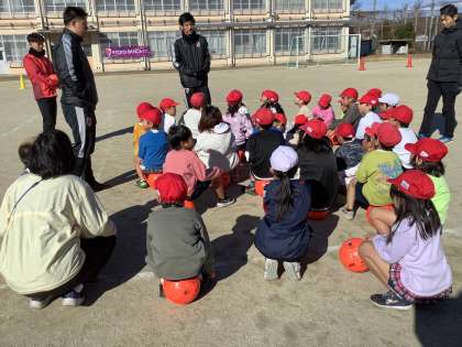 今日はサンガつながり隊がありました。ボールを使って、楽しく考えながら体を動かしました。そして話を聞くことの大切さをコーチから改めて教えてもらいました。最後には、サッカーのゲームをしました。ボールに向かって、走っていました。