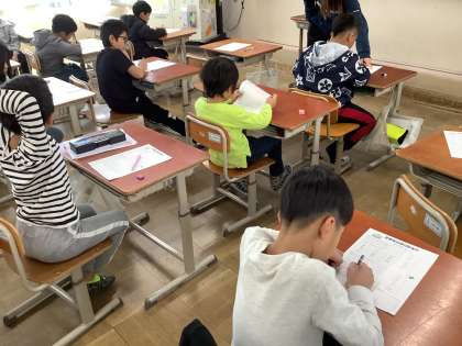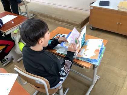 2学期のふりかえりをしています。2学期頑張ったことや成長したことなどを考えていました。振り返りが終わると、本を読んでいました。
