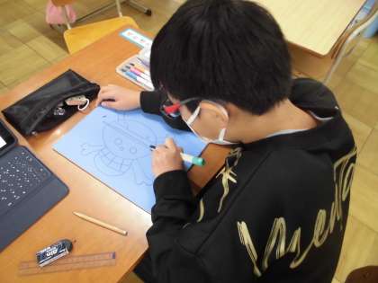 版画に挑戦していました。彫刻刀の使い方に気を付けながら作業していました。