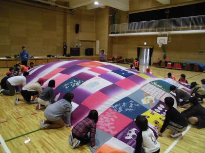 先週、向島小学校と向島秀蓮小中学校の三校で交流会をしました。巨匠展に向けた作品交流や風呂敷バルーン、ドッチビーをして楽しみました。感想を発表する姿もみられました。これからもたくさん交流できればいいですね!