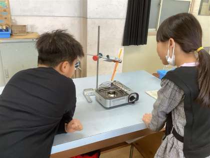 3年生も4年生も、理科室で実験をしています。3年生は磁石を使い、4年生は物のあたたまり方の実験をしています。実験の後は、パソコンで結果をまとめていました。