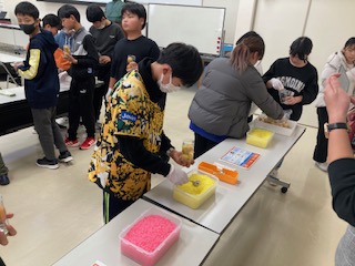 氷砂糖、金平糖、きび砂糖の3種類から、自分の好みで好きな梅ジュースを作ります。梅ジュースは持ち帰りますので、お家でも楽しめそうです。