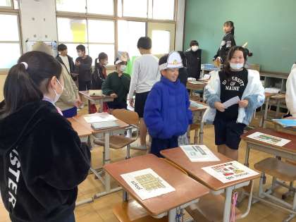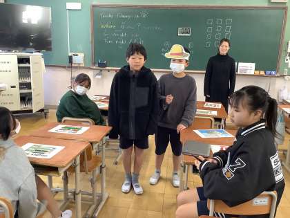 外国語の学習では、Go straight. や Turn right / left . 等の表現を使って、道案内の挑戦をしています。