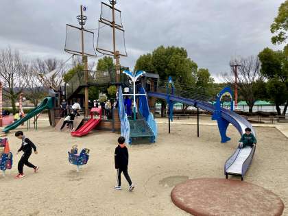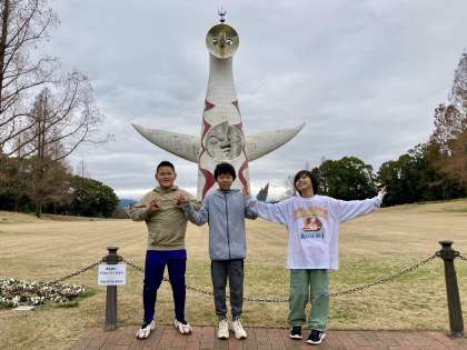 食事の後は公園内の自由行動を楽しんでいます。「太陽の塔」も間近で見ることができました。