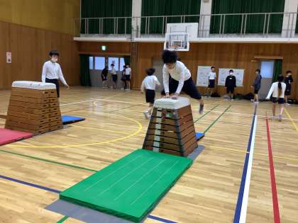 とび箱運動の学習も順調に進んでいます。課題に合わせて学習の場も選択しながら活動しています。