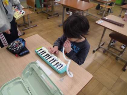 休み時間に何やら鍵盤の音が聞こえてくると思ったら自主的に好きな曲を練習していました。