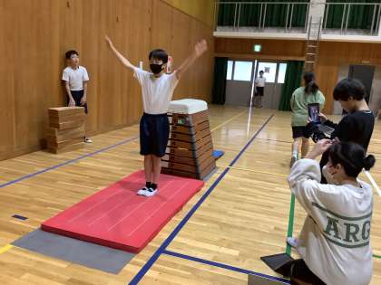 体育のとび箱運動の学習も今日が最終回でした。テストでは自分のできるようになった技を撮影しました。