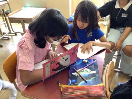 自分の名前を使って、クラスメイトの知らない自分の一面を紹介します。楽しみながら学べました。