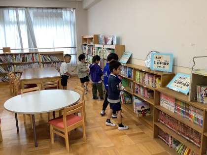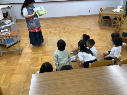 学校司書の佐々木先生にオリエンテーションをしてもらいました。メディアセンターの使い方や本こと、読み聞かせをしてもらいました。最後にはクイズを楽しみました。分類の番号の本を探して、持ってくることができました。